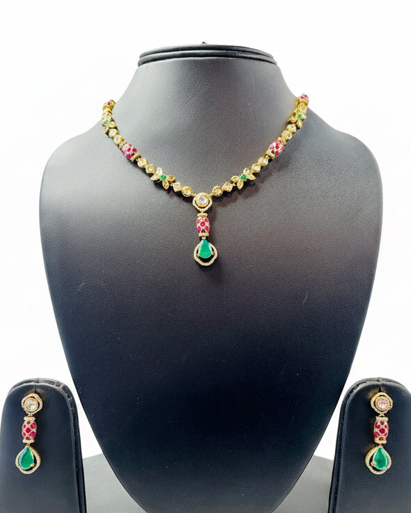 American Diamond Ruby Red Choker Set