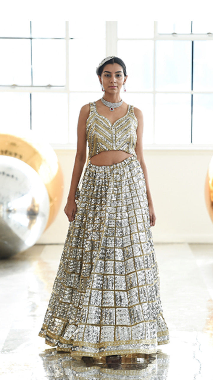 Navy Blue Silk Blend Lehnga Set
