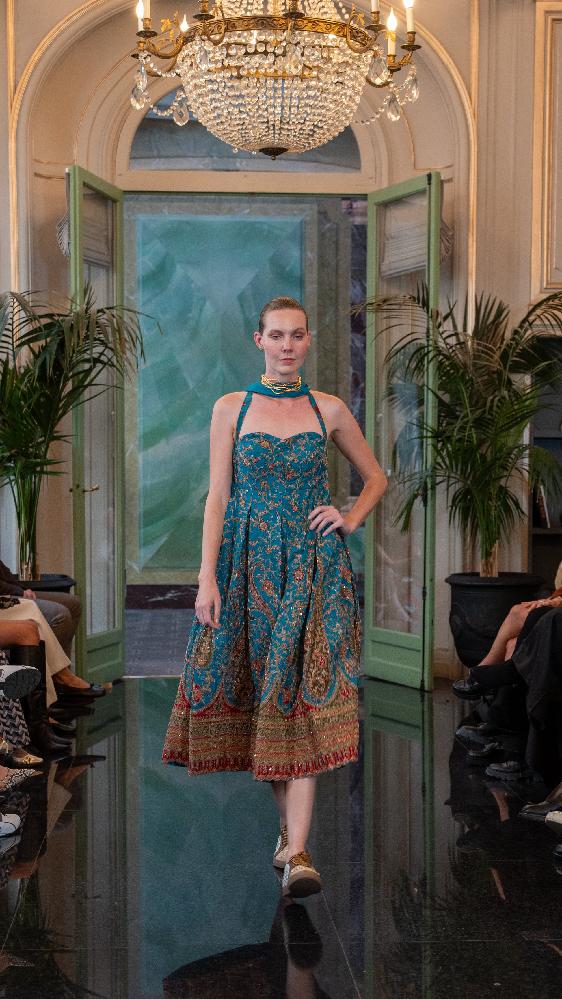 The bright blue color strapless dress is perfect for any festivities or cocktail party.