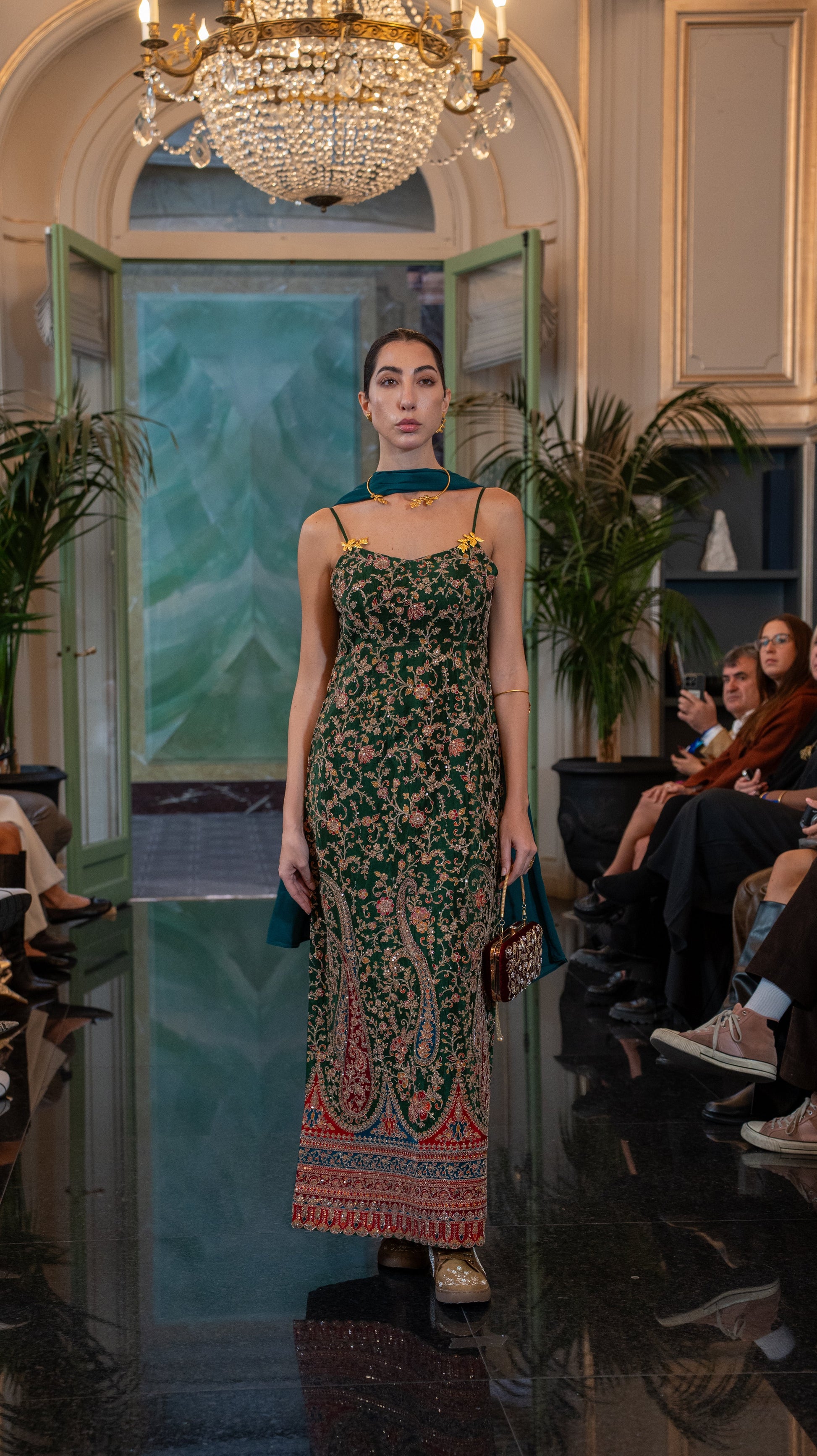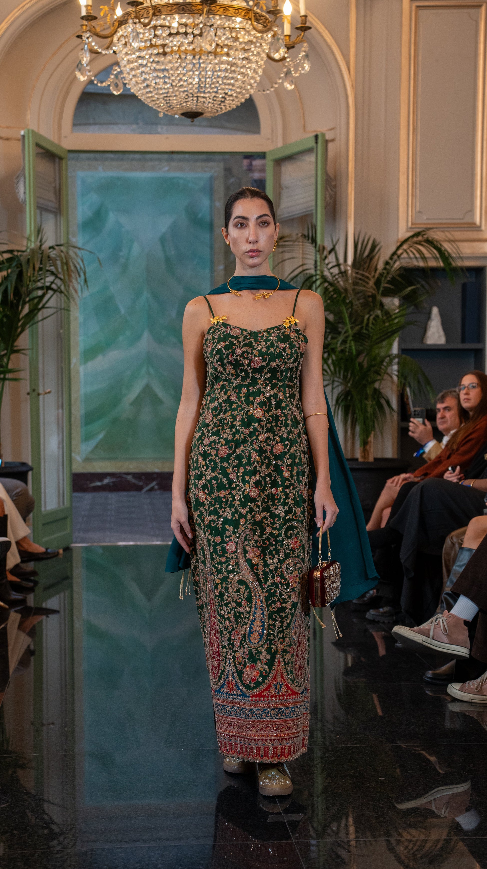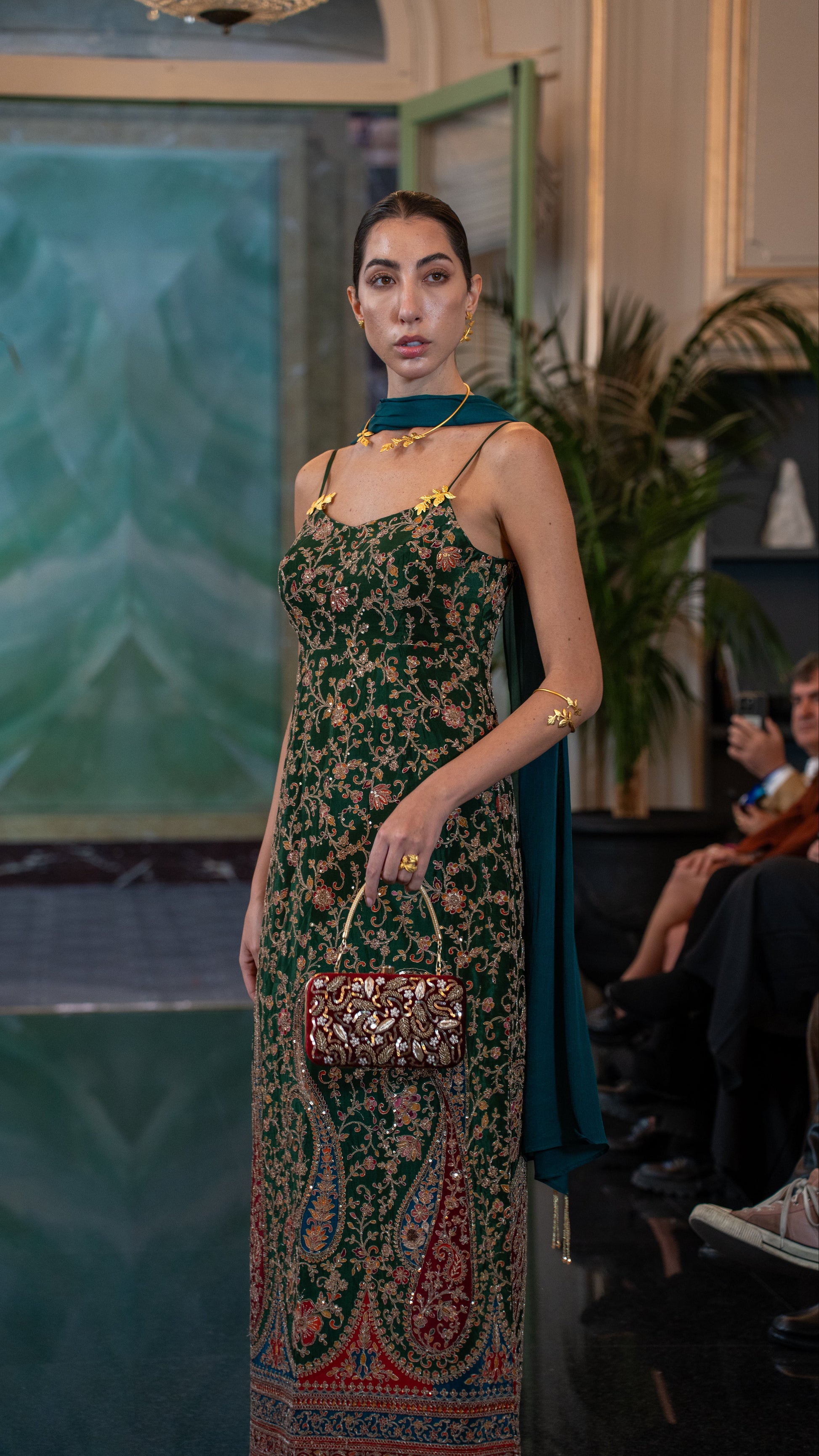 The jewel tone emerald green color maxi dress is perfect for any festivities.